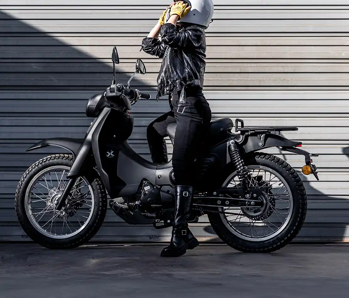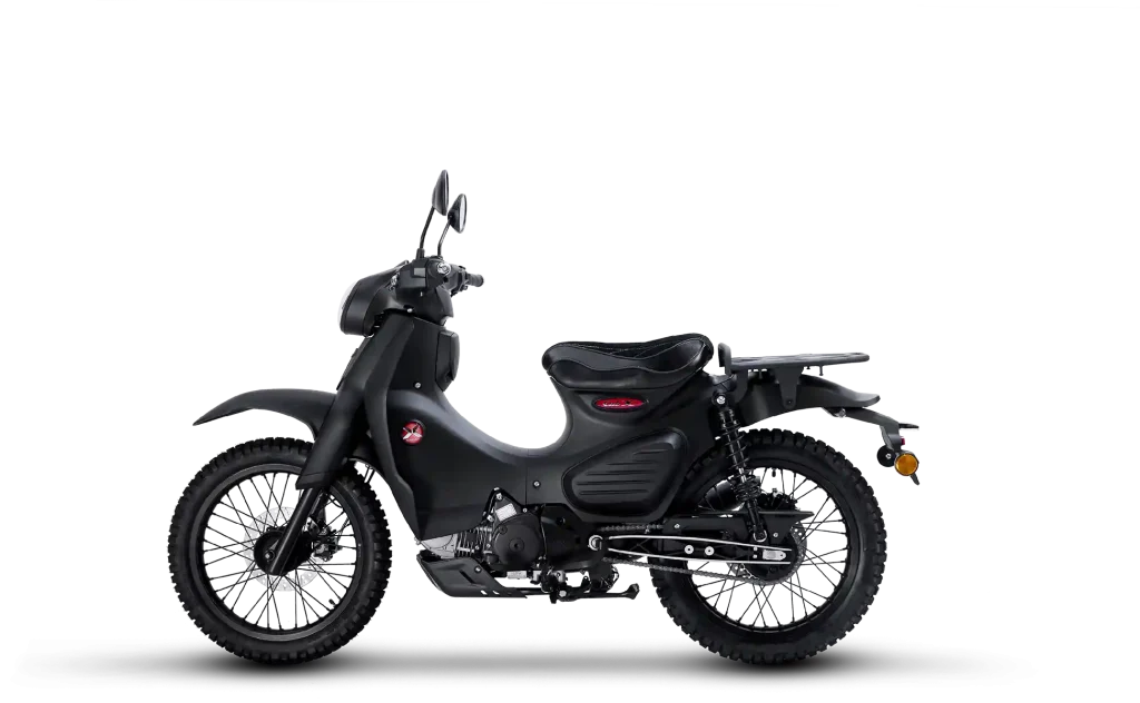 CUB X 150 by Kamax – China’s premier Cub motorcycle maker – featuring a spirited 147.5 cc 4-stroke engine, front/rear ABS and TCS, 4-speed semi-auto gearbox, full-LED lighting, and LCD digital display. Built for city commuting with adventure readiness.